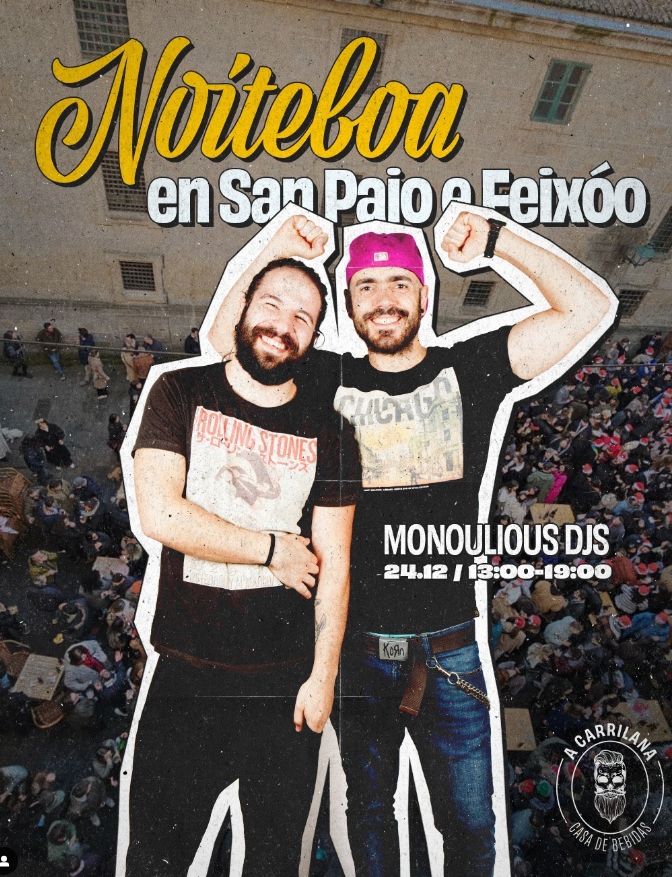 « Todos os eventos Este evento pasou. Vermú-tardeo Noiteboa con Monoulious DP 24 Decembro, 2024 @ 13:00 - 19:00 « Fantasmage + Nutrias na Fábrica de Chocolate Tardeo de Noiteboa con Banana Joe » Sesión vermú previa a Noiteboa cos Monoulious DP na Praza de San Paio fora da Carrilana. Engadir ao calendario Google Calendar iCalendar Outlook 365 Outlook Live Detalles Data: 24 Decembro, 2024 Hora: 13:00 - 19:00 Categoría do Evento: Santiago de Compostela Recinto Carrilana San Paio de Antealtares nº16 Baixo Santiago de Compostela, A Coruña Spain + Google Map Ver a Páxina Web do Recinto
